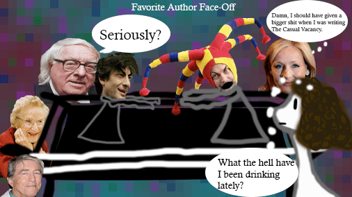 I guess I should start this with a feud my brain has been having over the past couple of years; who’s my favorite author ever? It’s a hard choice since I don’t have time to read as much as I used to and what I do read I choose based upon wether its good or not. I don’t go blindly into the library anymore (well exception being comics, generally I can read those faster than “real” books). So to pick an all time favorite is very hard.