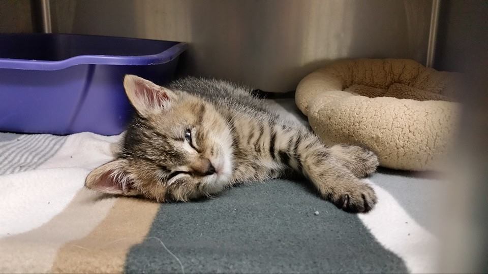 They estimated her to be 4-5 weeks old and she only weighed 1 single little pound. After cleaning her eyes off the vet determined she had ulcers on both. Those were more easily treated with medicated drops. The underlying problem is she has a more uncommon birth defect called Eyelid Agenesis. Basically she has no upper eyelids. This means her lashes grow right onto her eyeballs and corneas. This can cause ulcers, as she had, corneal tears, and other serious eye problems over time. The only way to fix this is with specialized surgery. The special eye doctor will cut some skin off from her cheek area and then surgically graft her new eyelids. A few weeks after the surgery they will freeze via liquid nitrogen any lashes that are growing underneath the new lids and remove them. Then the new lashes will grow over top of the new lids. It’s amazing what can be done.