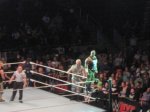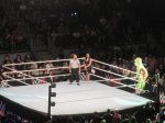 IC Title: Darren Young defeated The Miz by count out: When Maryse came out my friend noted that a lot of Mainers speak french so she better watch her language. Darren got some cheers but people were more happy to see Bob Backlund. I checked and the last time he was at the Augusta Civic Center was March of 1983 where he faced Kung Fu Superstar Billy Graham. Anyway, the match was alright. Young did a lot of amateur offense with waist locks and takedowns. He got the crowds attention with a straight punch to Miz’s face, though. Maryse was tossed for interference and walked right out of the building. Miz tried to bolt but Bob stopped him in the aisle. Miz faked that Bob punched him so Bob was tossed as well, but he just hid behind the Entrance. Eventually, the match ended when Miz bailed out through the crowd and Young and Bob celebrated for a bit.
