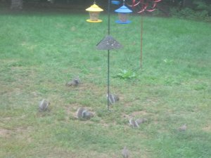 Along with them, this time of year brings out a couple of smaller red squirrels. They and a LOT quicker than the bigger and fatter gray ones, but they like stuff off the feeders as well. I’ve seen a couple of fights between the red and grey squirrels too. Squirrels aren’t cuddlers that is for sure!