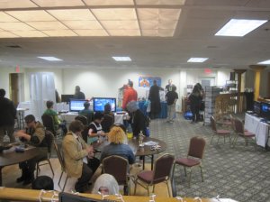 We stopped at the local Walmart to get some sodas for the day and this is when I find out there is something up with my bank’s card. Wonderful. I had some money on me, but most of my savings for the weekend wasn’t going to happen. Never the less we made the hour drive to South Portland and right into line before getting registered and I got my press pass for the day. It also gave me a chance to personally thank Greg Ayres for some of the things he has said over the years and about a friend of ours. It is always great to meet Greg Ayres and he seemed to be doing good and he told me the news that his brother Christopher (The voice of Freiza in Dragonball Z) who had been through a double lung transplant recently. Greg gave me an update on that and Both seemed to be doing pretty good.