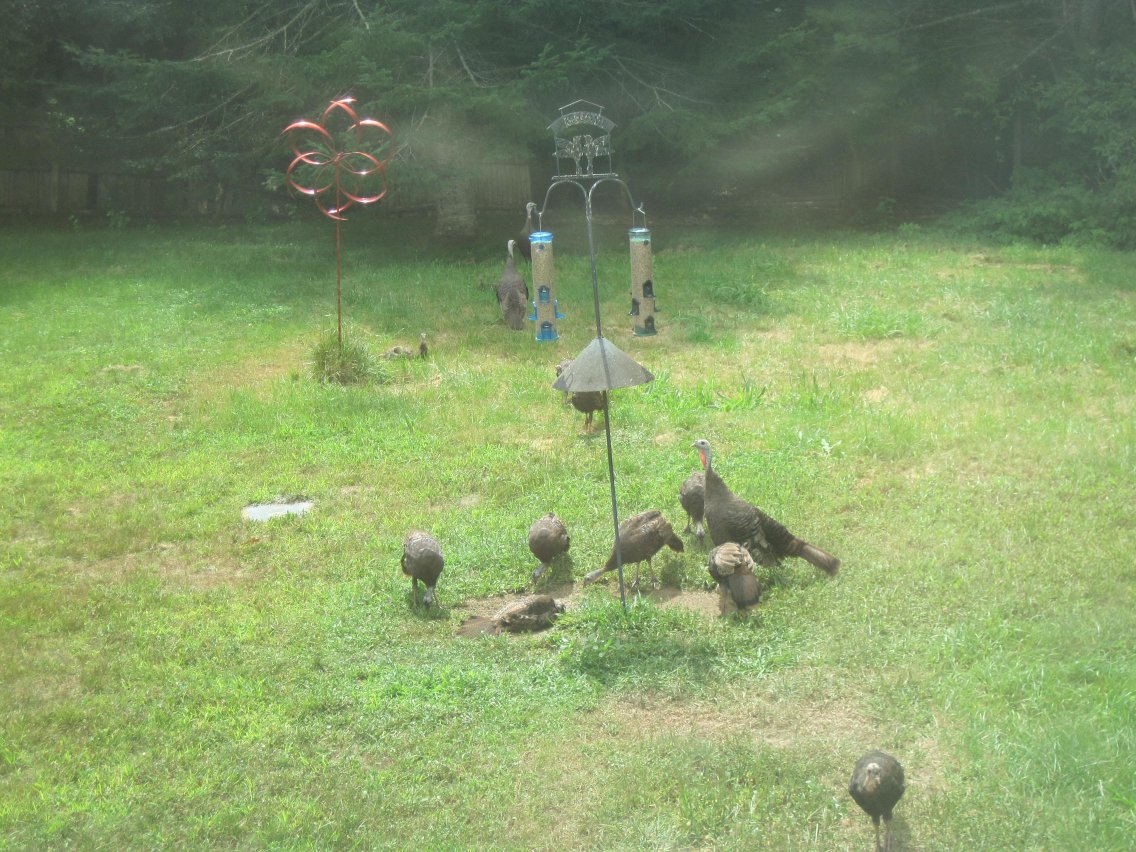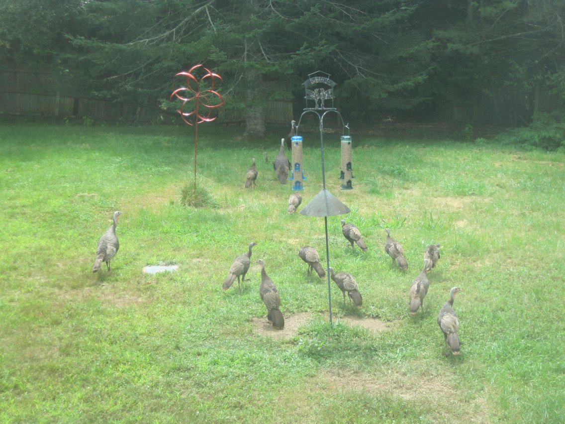Thankfully it seems the only one who really notices the turkeys coming around is me. I was woken up the other morning by some gobbling close to my bedroom window and I look out and see a group of them passing by my bedroom and they had plenty to talk about I guess. Once I saw them trotting by I smiled a bit. Love those birds.
