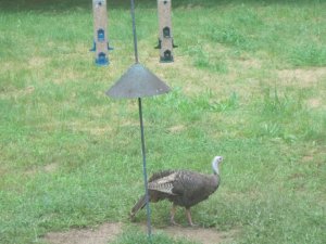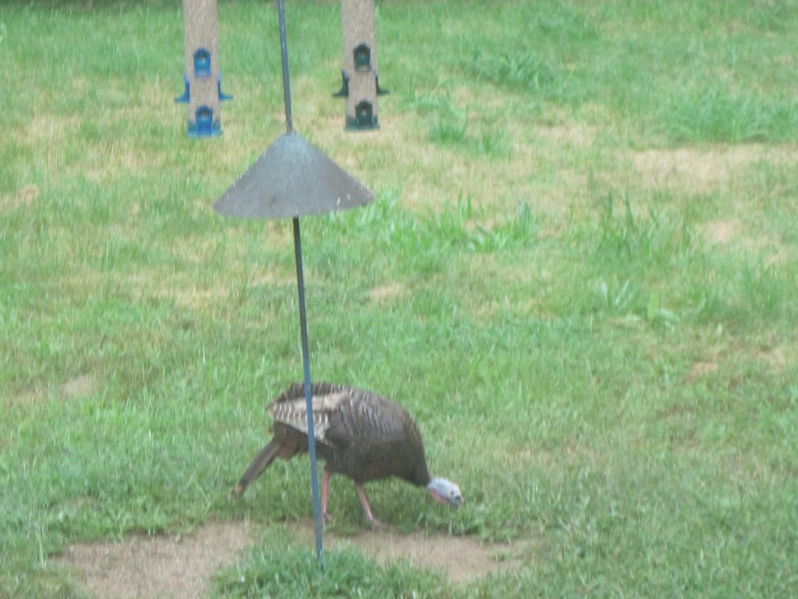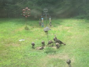 With all this coronavirus still keeping me home most of the time, you notice these things and they do me well. I need to get my mind off the depressing things. Lately, in the mornings our bird feeder in the back yard is becoming a gathering point to a group of wild turkeys. Much like they do every year.