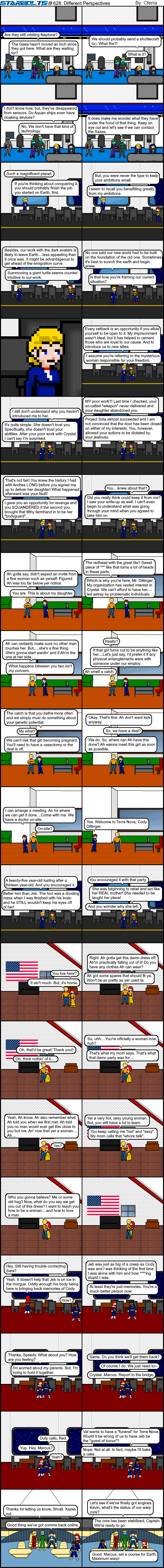 This week’s comic has a trigger warning because once again Cody is in it. I don’t think I’ll be able to ever do a comic with him in it that doesn’t have a trigger warning up top. At least this week we’ve found out a few new things about him. The first and most obvious thing is that he was hired by Ruby to be Crystal’s “bodyguard”. Well, the “bodyguard” got a little too close to his charge and things happened. Our heroine was clearly impacted by these events and we know that eventually she was saved by Marcus and joined the Starbolts. She eventually fell in love with Marcus and the rest is history. Still, it’s hard to see/read these stories with Cody. But, this bit of the tale had to be told because of what’ll happen when Crystal inevitably confronts Ruby. He was hired by Terra Nova and he decided to take advantage of the situation. Once Crystal finds out about all this (And she will) you can bet that heads will roll.